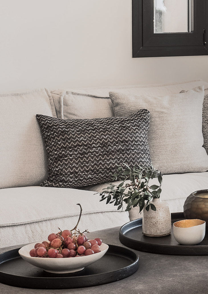 Using this uniquely beautiful Belgian fabric with a detailed tribal stitched pattern – these cushions are striking pieces that will elevate any room. A perfect way to insert some subtle pattern into your interior.